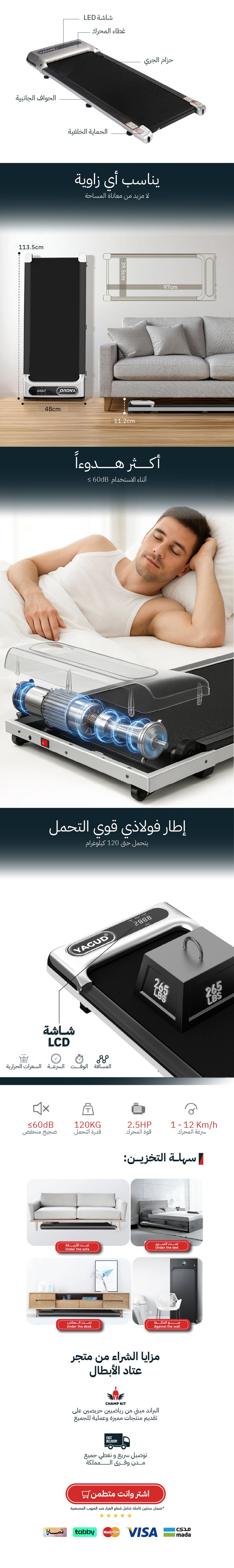 يتميّز بتصميم مدمج وأداء موثوق، ليمنحك تمارين مشي آمنة وفعالة في راحة منزلك، دون الحاجة للذهاب إلى النادي.