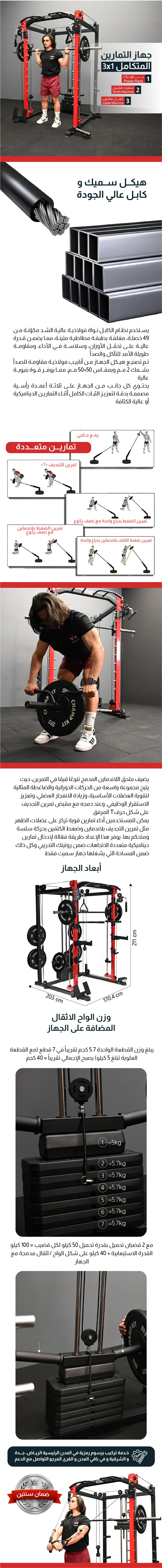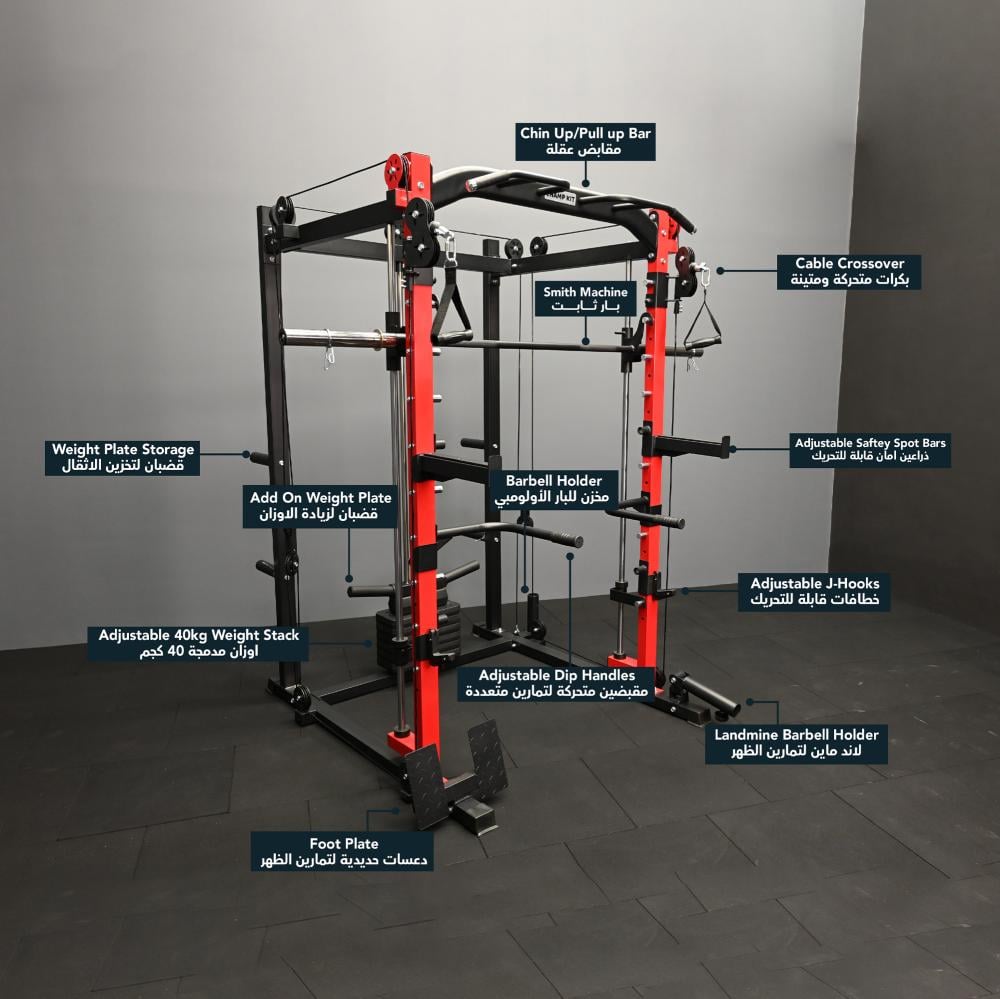 جهاز التمارين المتكامل - كيبل مشين و باور راك و سمث مشين مع اوزان وبار ثابت وملحقات لجهاز السحب