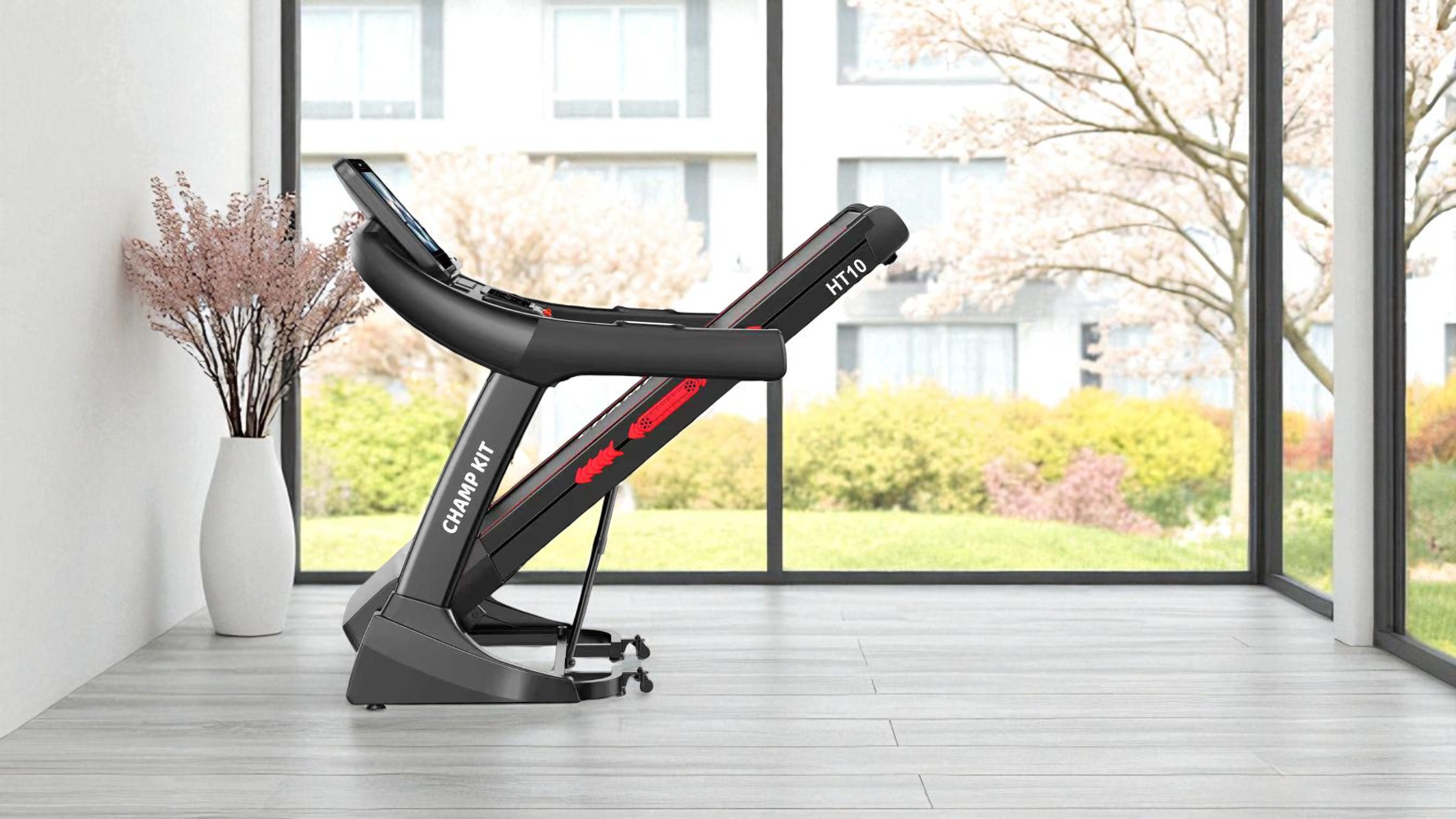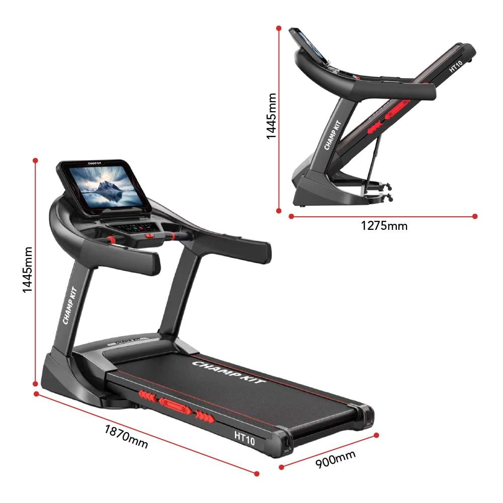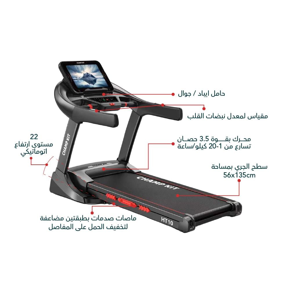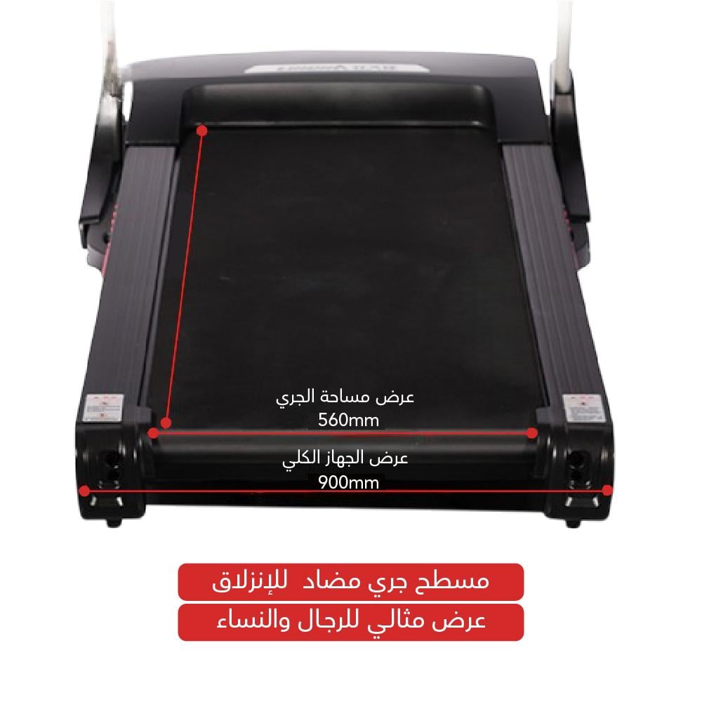 - سطح الجري: مساحة مريحة 56 × 135 سم، مع لوح مزدوج الطبقات وممتصات صدمات كبيرة لحماية المفاصل.