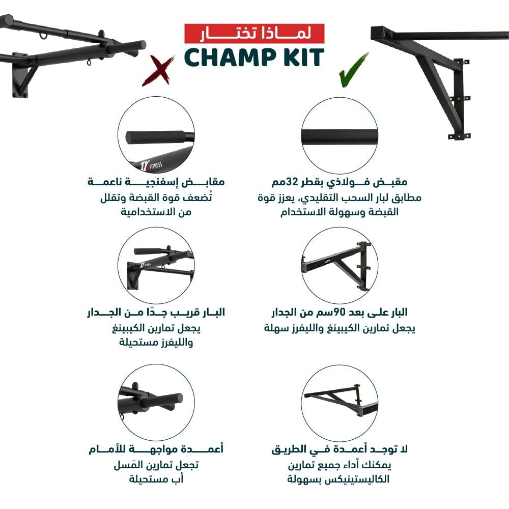 ✅ 【بار قابل للتوسيع】تتميز عقلة جدارية من تشامب كت عن غيرها أنه بإمكانك تتحكم ببعد البار عن الجدار بـ 2 مستويين، الأول هو (33.5 سم) والثاني هو (53.5 سم) حتى تتناسب مع نوع التمرين والمهارة اللي تتمرنها.